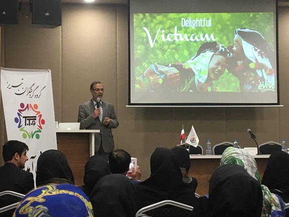 درادامه این مراسم ازسرکارخانم اِما Emma مدیرشرکت گردشگری کشور ویتنام اویوا (eviva) به عنوان سخنران این همایش دعودت بعمل آمد تا برای مدیران آژانس های گردشگری پتانسیل های گردشگری کشورویتنام را معرفی نماید.