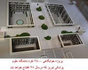 با مدیریت جهادی جناب دکتر صومی شاهد توسعه عظیم فضای رفاهی وخوابگاهی در محوطه دانشگاه علوم پزشکی تبریز هستیم.پروژه خوابگاهی ۲۵۰۰ نفره دانشگاه علوم پزشکی تبریز که در قالب ۹ بلوک با ظرفیت ۳۲۰ واحد یا سوئیت در حال تکمیل و ساخت است.