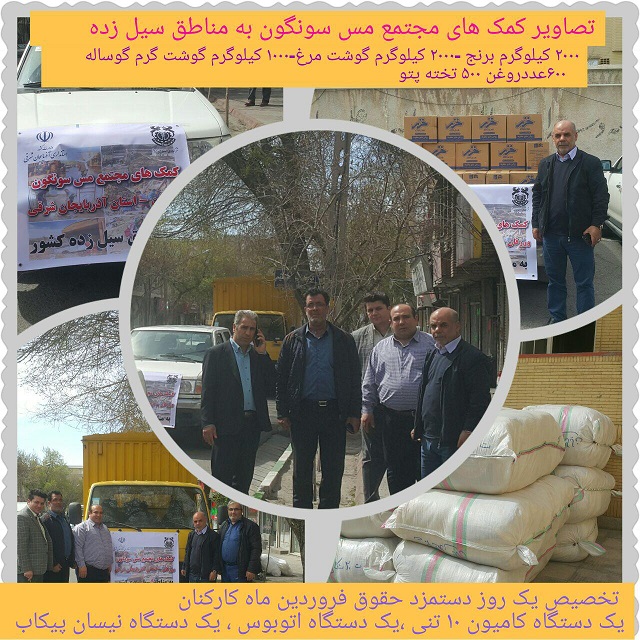 آرمان تبریز-مجتمع مس سونگون ورزقان با ارسال محموله های مورد نیاز به یاری سیل زدگان کشورمان شتافت + تصاویر