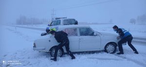آرمان تبریز-پلیس راه سراب تبریز به یاری خودروهای که به علت کولاک و برف در گرفتارشده بودند شتافتند .